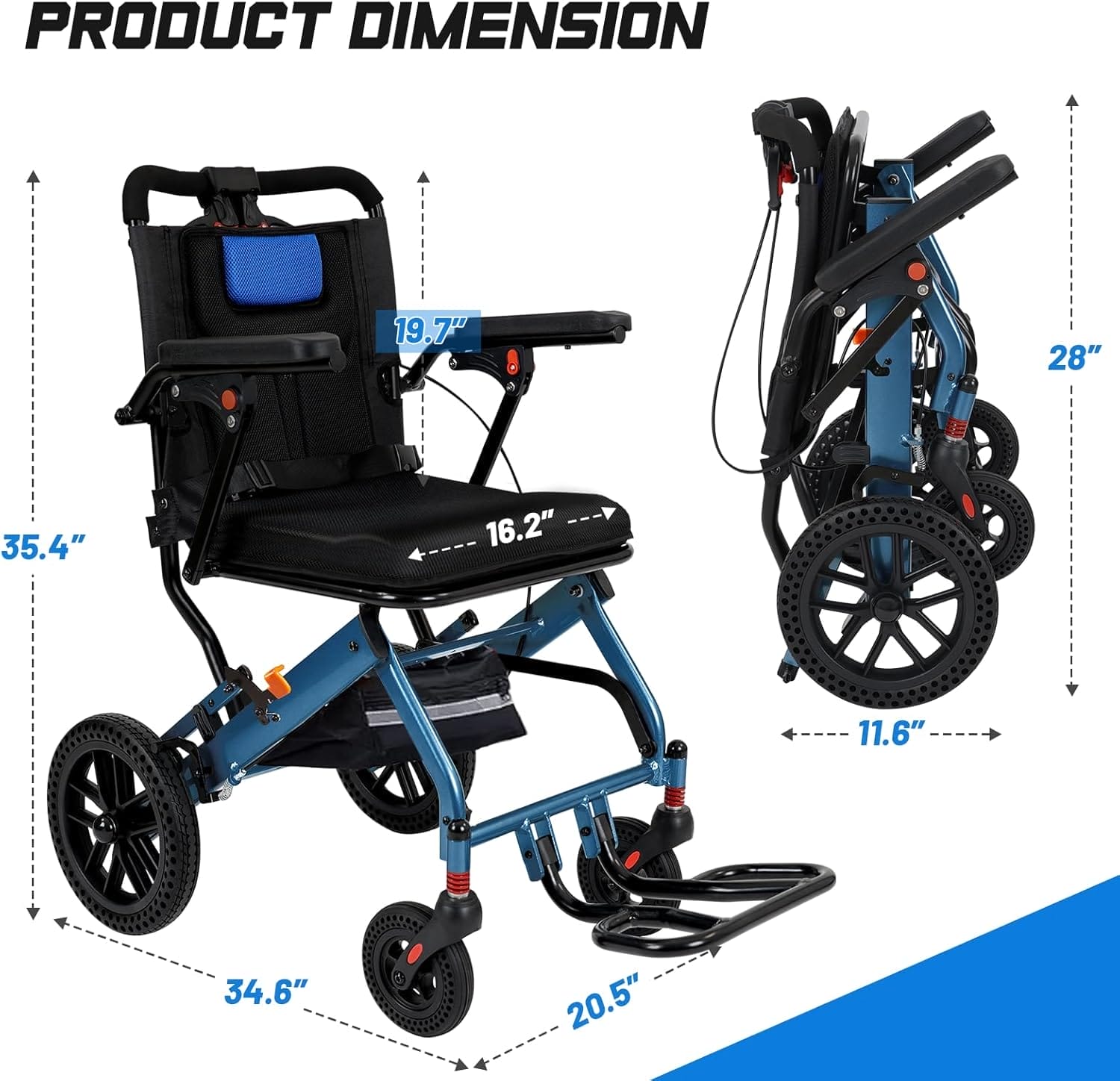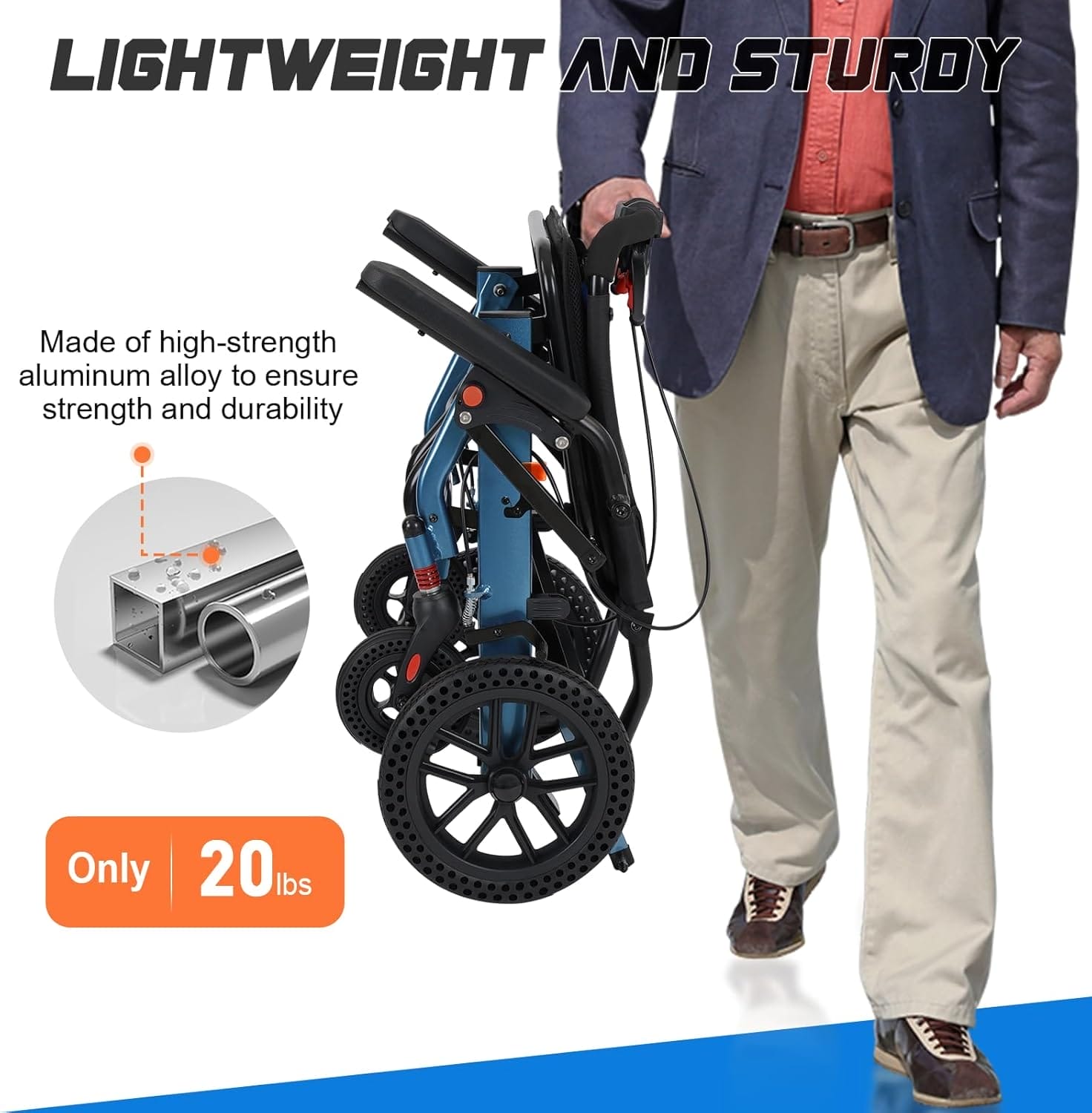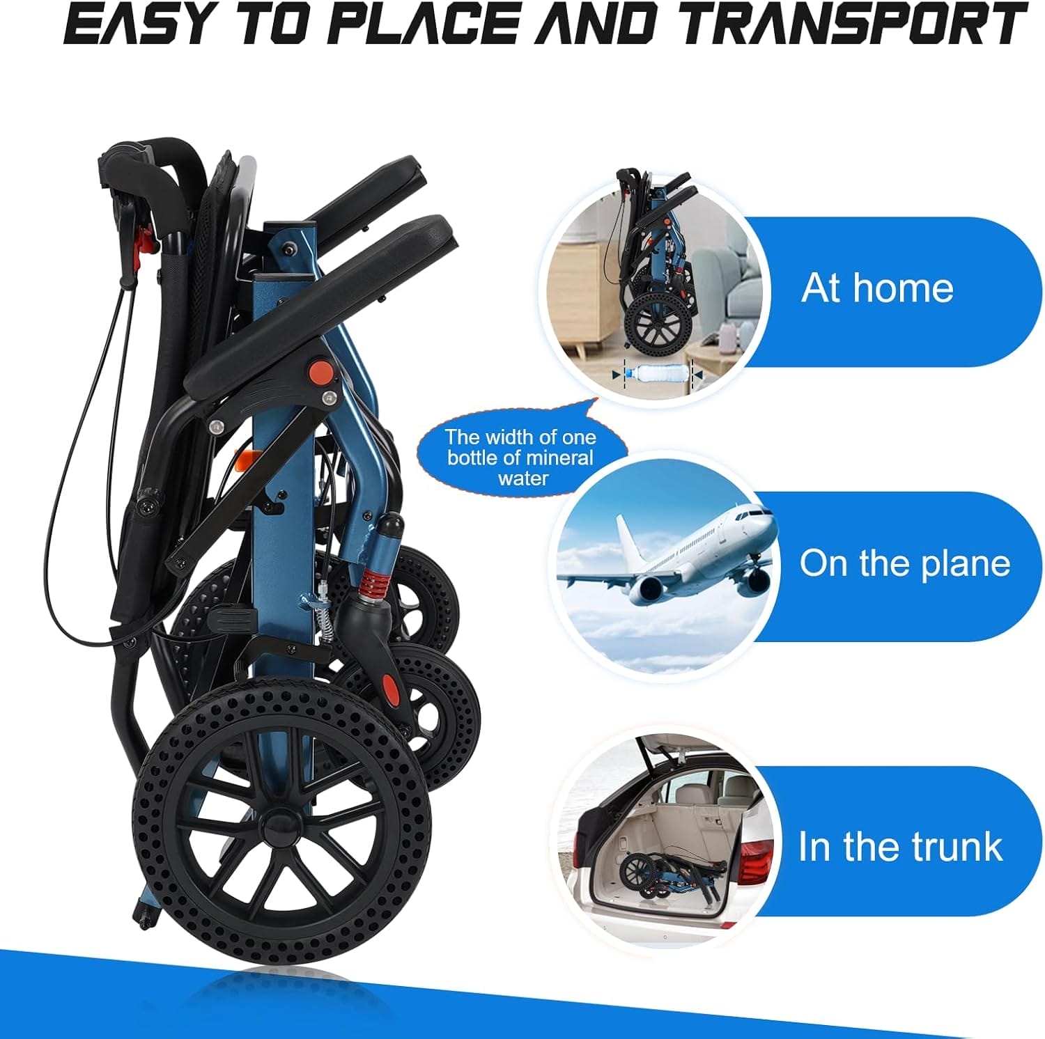 Ultra-Lightweight & Foldable Design-Weighing only 20 lbs, this transport wheelchair for adults is designed for easy portability. Its quick-folding mechanism allows it to be stored in car trunks or checked in for air travel, making it perfect for lightweight foldable wheelchairs and outdoor activities like trips to scenic spots or suburbs.