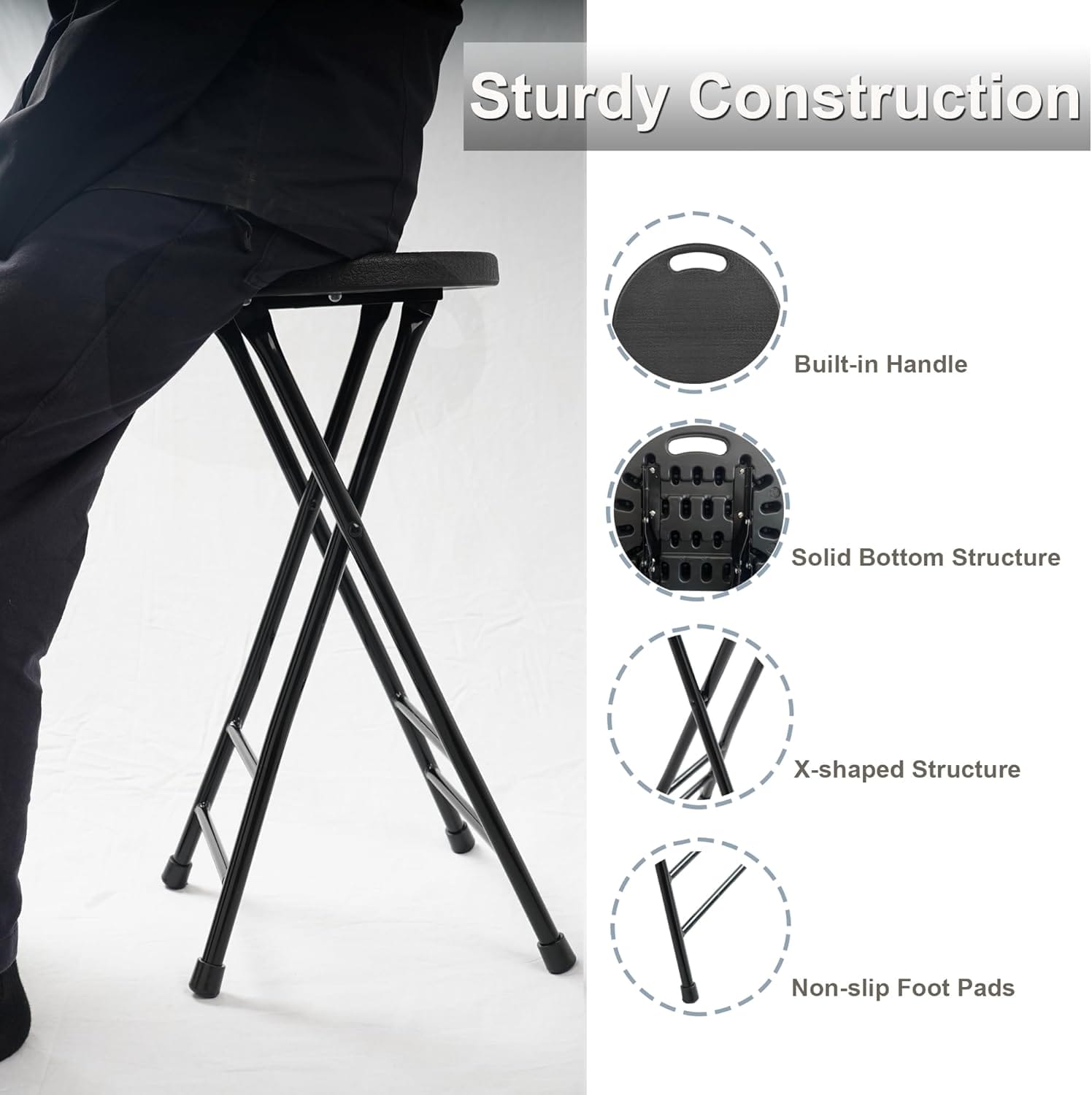 24-Inch Folding Stool with Handle, Folding Bar Stool wi