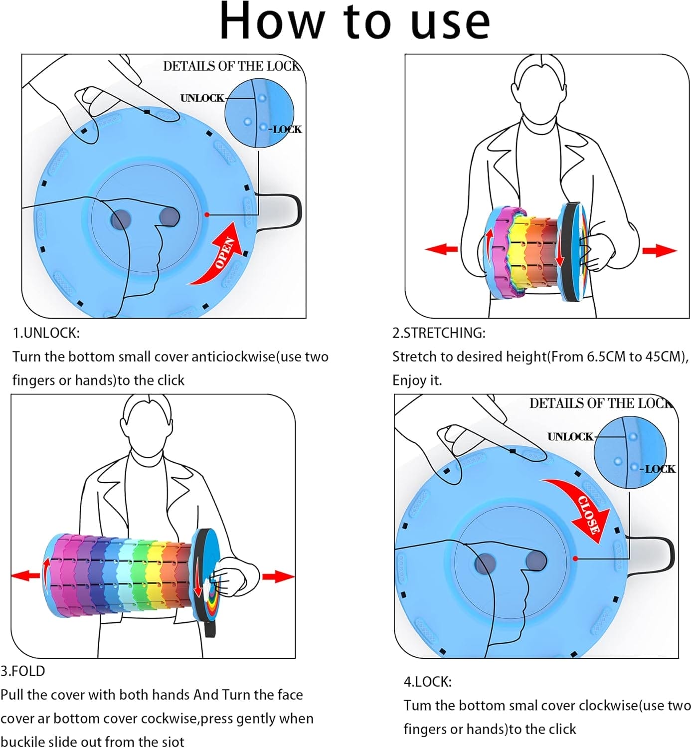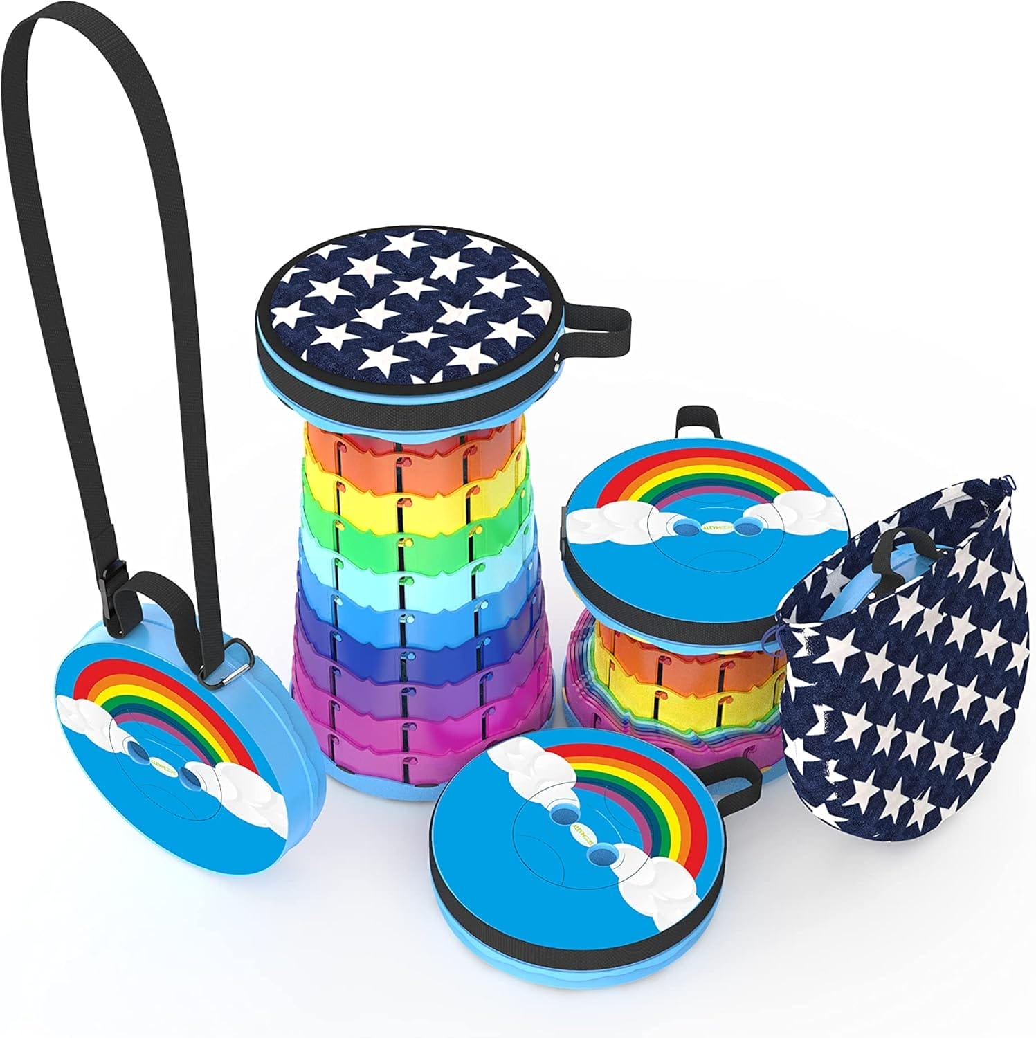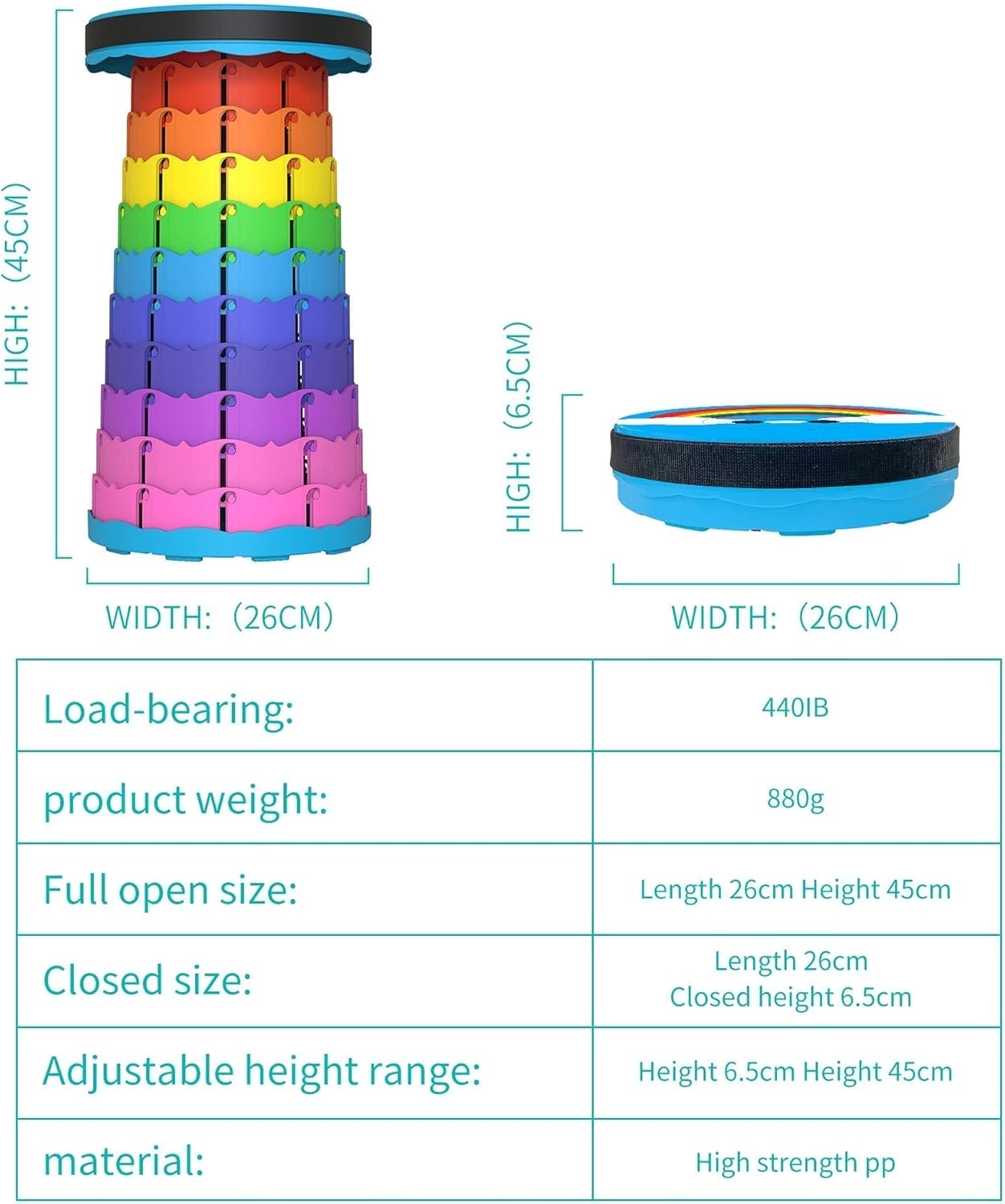 【Safety and Stability】 Retractable stool is made of high-strength heavy duty environmental friendly material plastic PP, the cylinder shape structure, tight connecting clasps, and the non-slip base ensure the stability of collapsible stool, provide safe and comfortable seat. The maximum load capacity is as much as 440lbs!