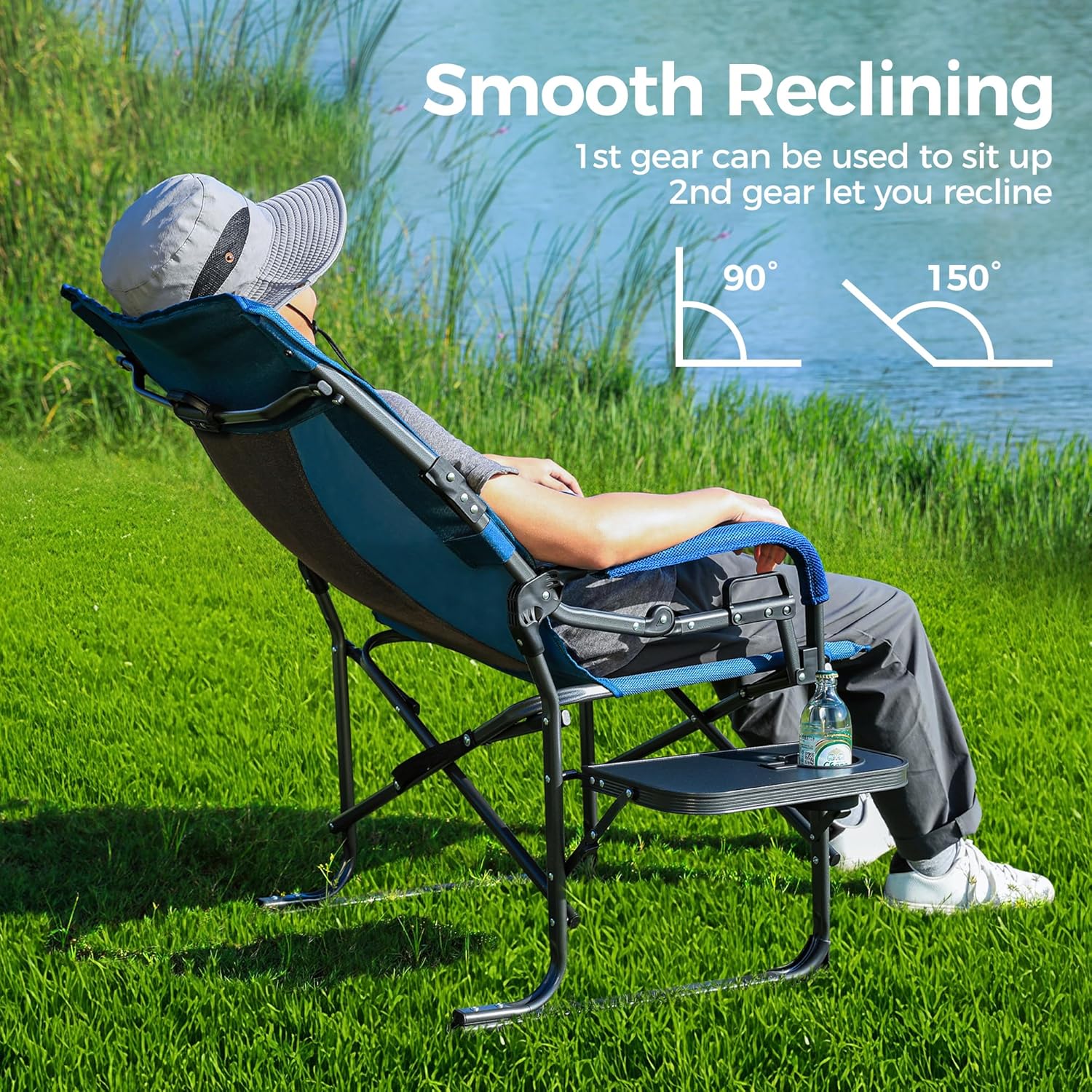 Durable and Comfortable Oxford Fabric:The seat and backrest of heavy duty camp chair are constructed with 600D Oxford fabric, which is highly wear-resistant. This fabric is known for its exceptional durability and tear resistance, making it perfect for withstanding the rigors of camping and outdoor activities.padded backrest are designed with breathable mesh fabric, allowing for improved airflow and a cool seating experience.