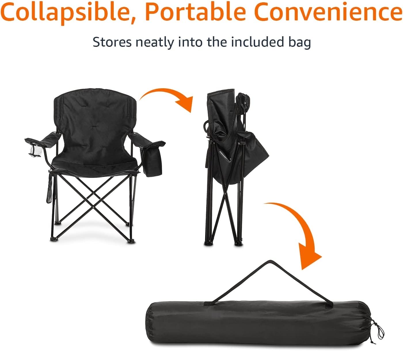COMFORTABLE SEATING: Enjoy the outdoors with this extra-large folding camp chair that features a lightly cushioned seat and back