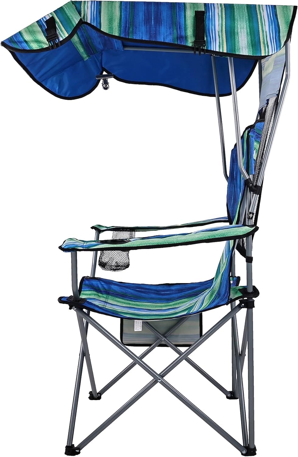 FOLDING OUTDOOR CHAIR – Portable beach, camp, or lawn chair with a higher arched back and 22.8″ wide seat, patented tilt shade canopy, convenient carry bag, and mesh cup holders