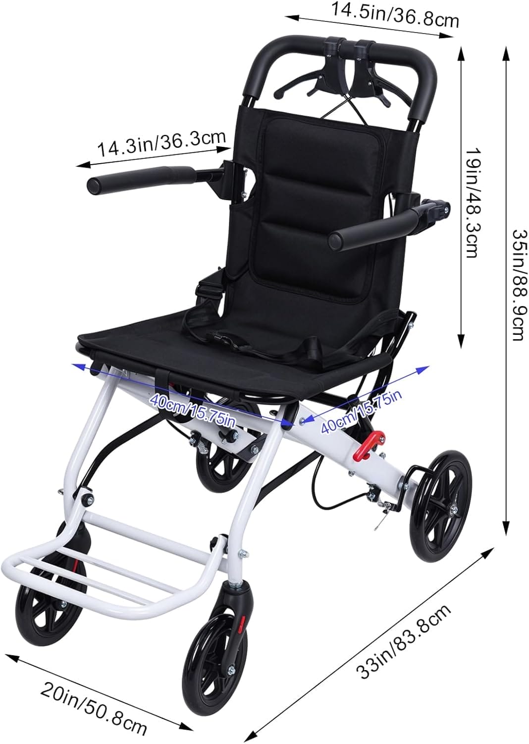 Foldable Design: The transport chair adopts foldable design, the folded size is only 10.24“ x 18.5” x 28.35”, which saves your storage space and allows it to be placed in a variety of places, such as the trunk of the car, luggage racks, gaps between cabinets, etc., which is convenient for you to carry it when you are traveling.