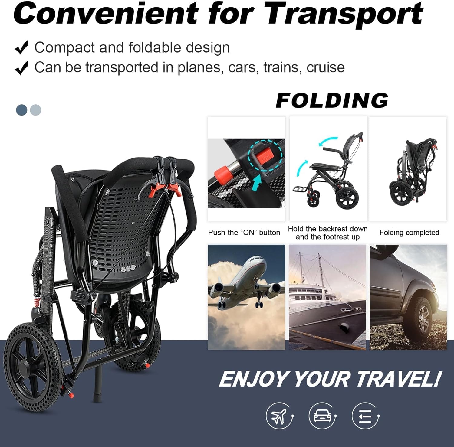 Folding transport wheelchair is portable, making it perfect for easy storage, transport and travel.