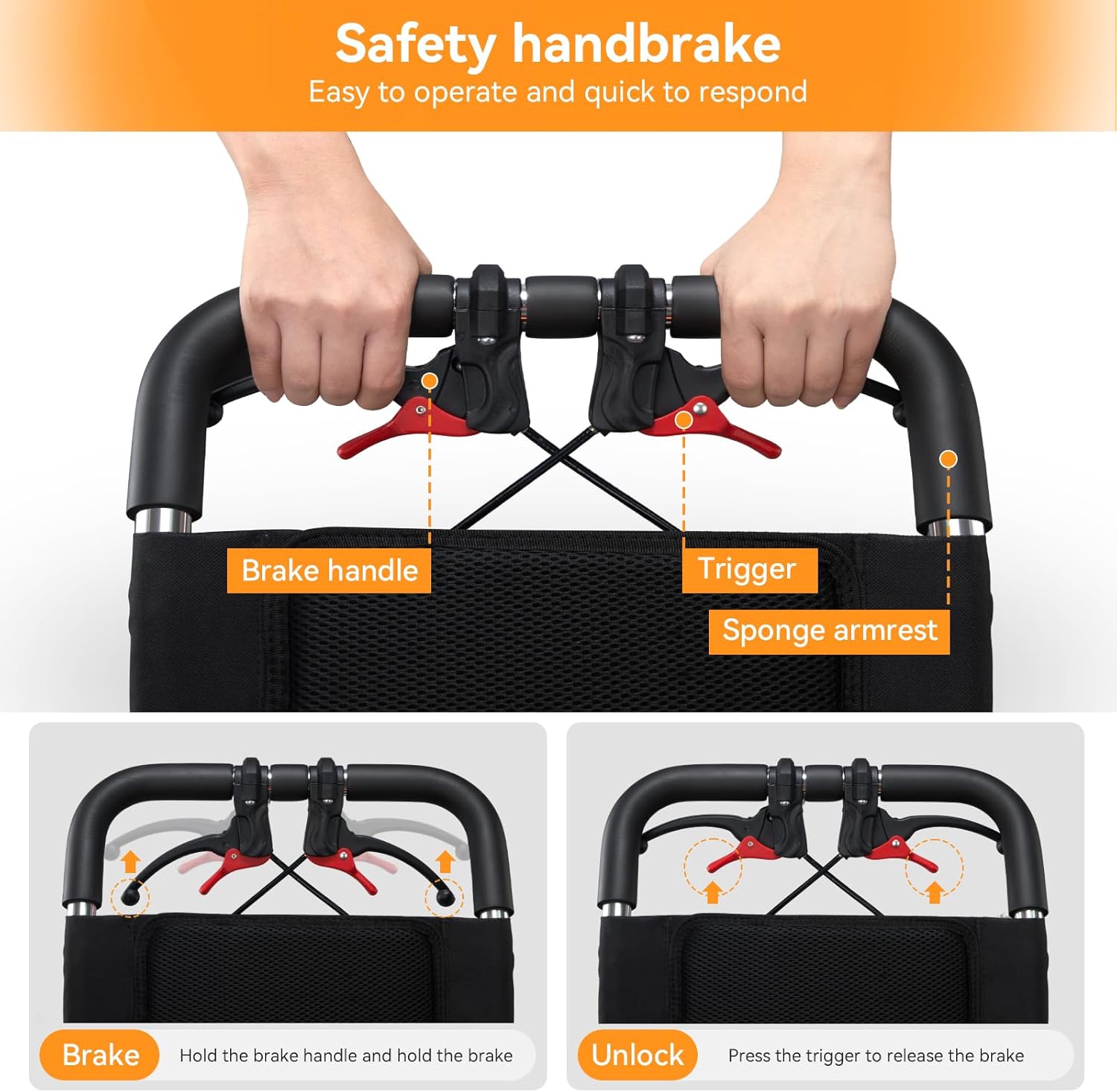 【SAFETY WHEELCHAIR】Portable wheelchair lightweight folding is equipped with a seat belt to increase safety and ensure the user’s safety while riding. Lightly pull the handle to enter the brake locking mode. It can be easily unlocked by lifting the trigger, making it more convenient to use. With this wheelchair, you will enjoy the journey!