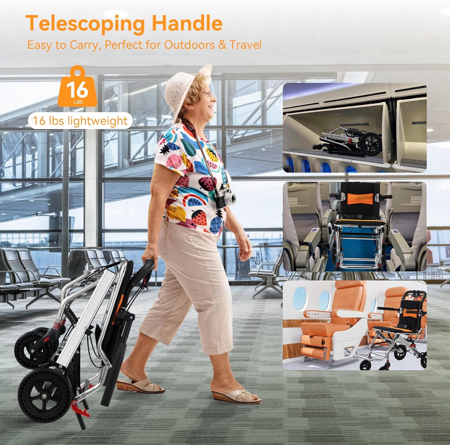 Ultra-Lightweight 19lbs Foldable Transport Wheelchair f