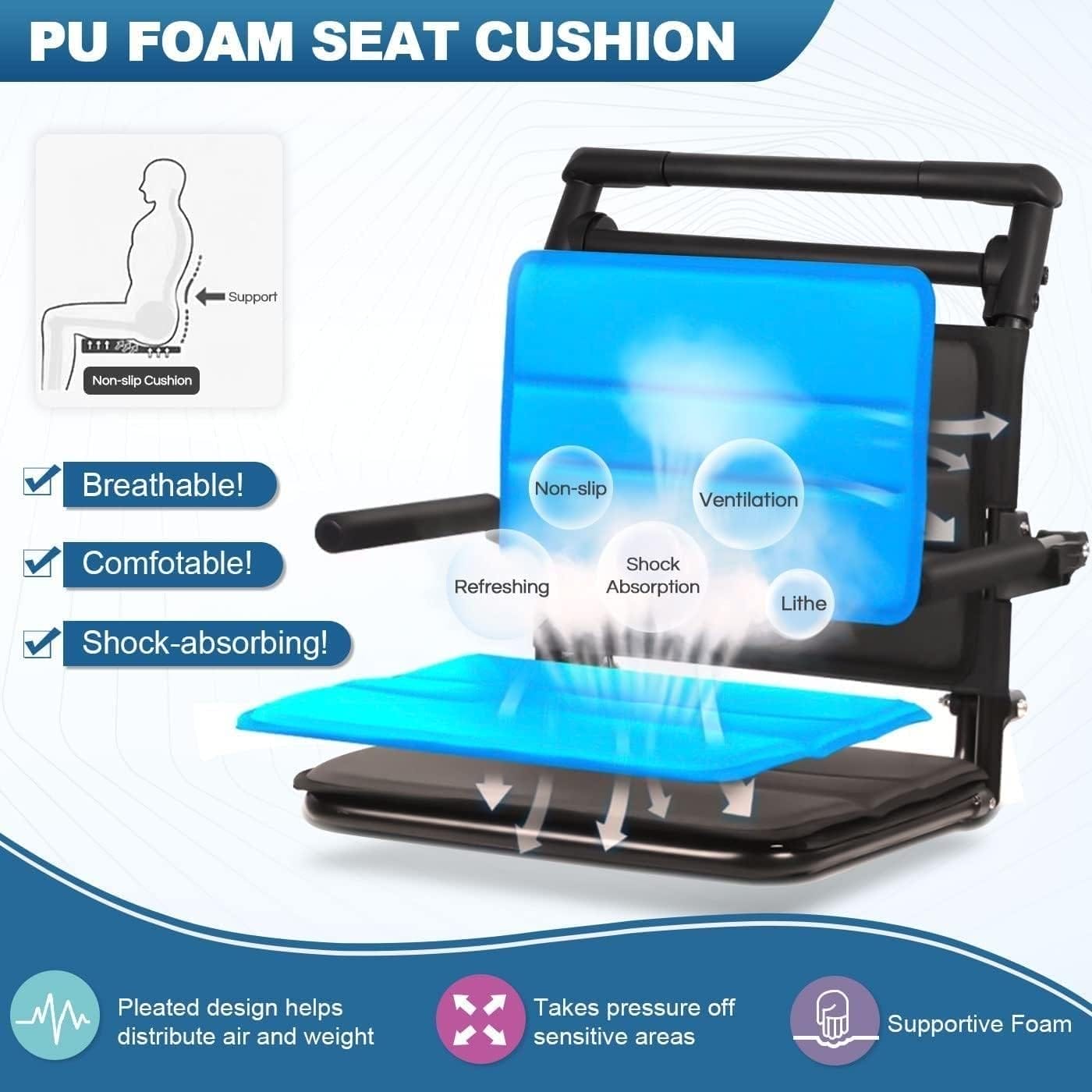 【Ergonomically Design】The integrated handbrake of the portable transport chair is flexible in operation and quick in response, and the brake can be fixed by holding the brake handle. The supportive foam of the non-slip cushion is soft, breathable and shock-absorbing, reducing pressure on sensitive areas. Make you and your family feel comfortable and at ease.