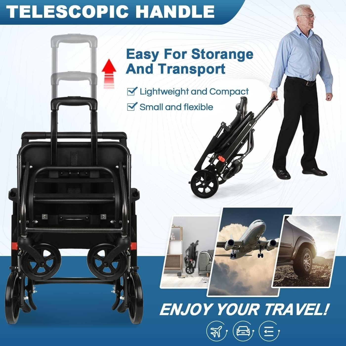 【Wheelchair with Upgraded Telescopic Handle】The upgraded transport wheelchair adds a telescopic handle, when you use the wheelchair, it can be completely hidden under the seat, neither affecting the use nor affecting the appearance. When you need to move the folded wheelchair, you can move it more easily through the telescopic handle.