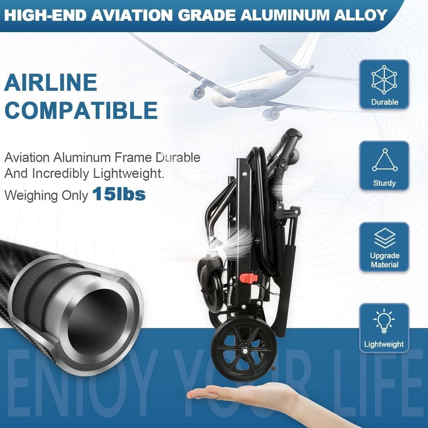 【High-quality Material Wheelchair】The lightweight frame is made of aluminum alloy, which is easy to carry. The high-quality aluminum alloy is strong and light at the same time, the tower-shaped three-dimensional frame distributes the force, and the thickened frame is strong enough, waterproof, wear-resistant, corrosion-resistant and requires no special maintenance.
