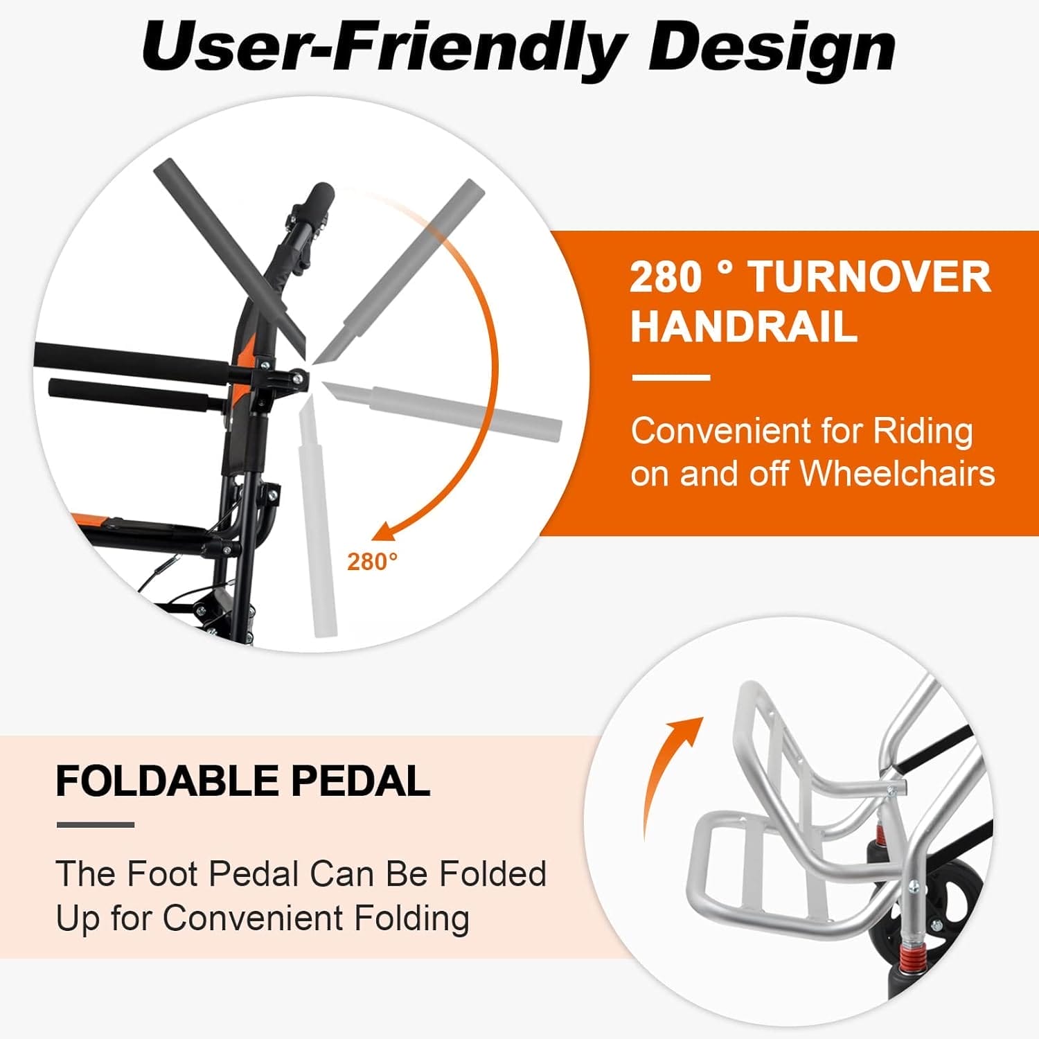【Comfortable Wheelchair】The armrest can rotate up to 280 degrees. The front wheels can rotate at 360 degrees. Foldable pedals make it easier to get up and down the lightweight transport wheelchairs for seniors. The backrest is tilted 5°, and the seat cushion is raised 3° to share the pressure of the waist and lumbar spine and provide a comfortable riding experience.