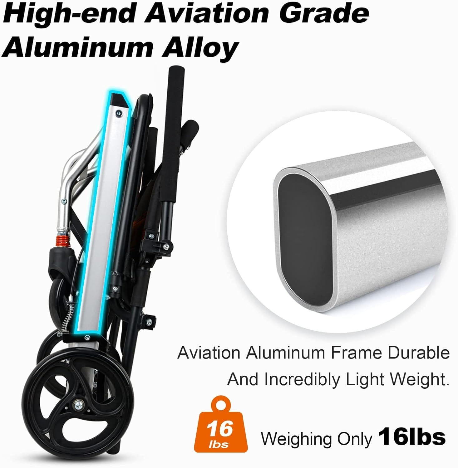 【Ultra-light Folding Wheelchair】Our transport wheelchair are come full-installed, no complicated installer. you can easily One-key folding and simple operation; this portable wheelchair is a good travel wheelchair because it fits easily into the trunk of a car. It can be carried on board an airplane, and the wheelchair comes with a carring bag. The travel transport wheelchair weighs only 16lbs, so even those with limited strength can handle it easily.